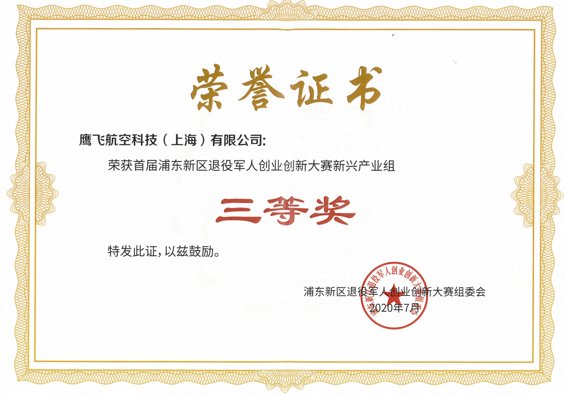鷹飛航空科技(上海)有限公司依托上海宗保保安服務(wù)有限公司,成立于2019年,是專(zhuān)業(yè)從事航空科技、智能科技、電子科技領(lǐng)域技術(shù)開(kāi)發(fā)、為街鎮提供地塊看管、河道巡查、五違防控、水域管理、三維建模、應急管理、臨保保障等業(yè)務(wù)的科技公司。公司的無(wú)人機數據管理平臺項目榮獲上海市退役軍人創(chuàng )業(yè)創(chuàng )新大賽新興產(chǎn)業(yè)組優(yōu)勝獎,浦東新區退役軍人創(chuàng )業(yè)創(chuàng )新大賽新興產(chǎn)業(yè)組三等獎。