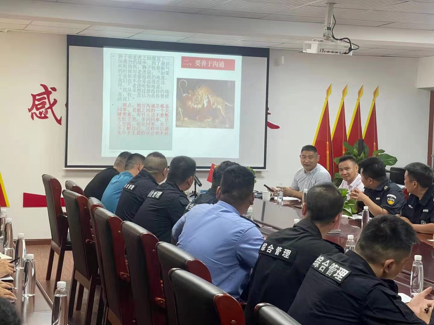 隨后,采取以會(huì )代訓的方式,組織全體人員觀(guān)看學(xué)習寓言警示故事,通過(guò)這些故事教育引導大家樹(shù)立團隊協(xié)作意識,學(xué)習掌握溝通技能,在日常工作中學(xué)會(huì )控制自己的情緒和脾氣,善于換位思考,主動(dòng)自我加壓,以此不斷提升自己的工作能力和工作水平。
