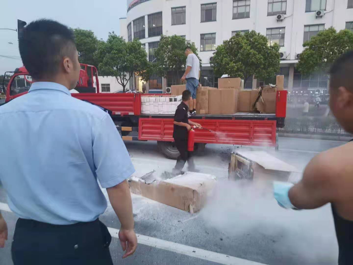 8月24日,宗保公司駐新場(chǎng)輔警項目隊員宋其波幫助貨車(chē)司機滅火,受到好評。