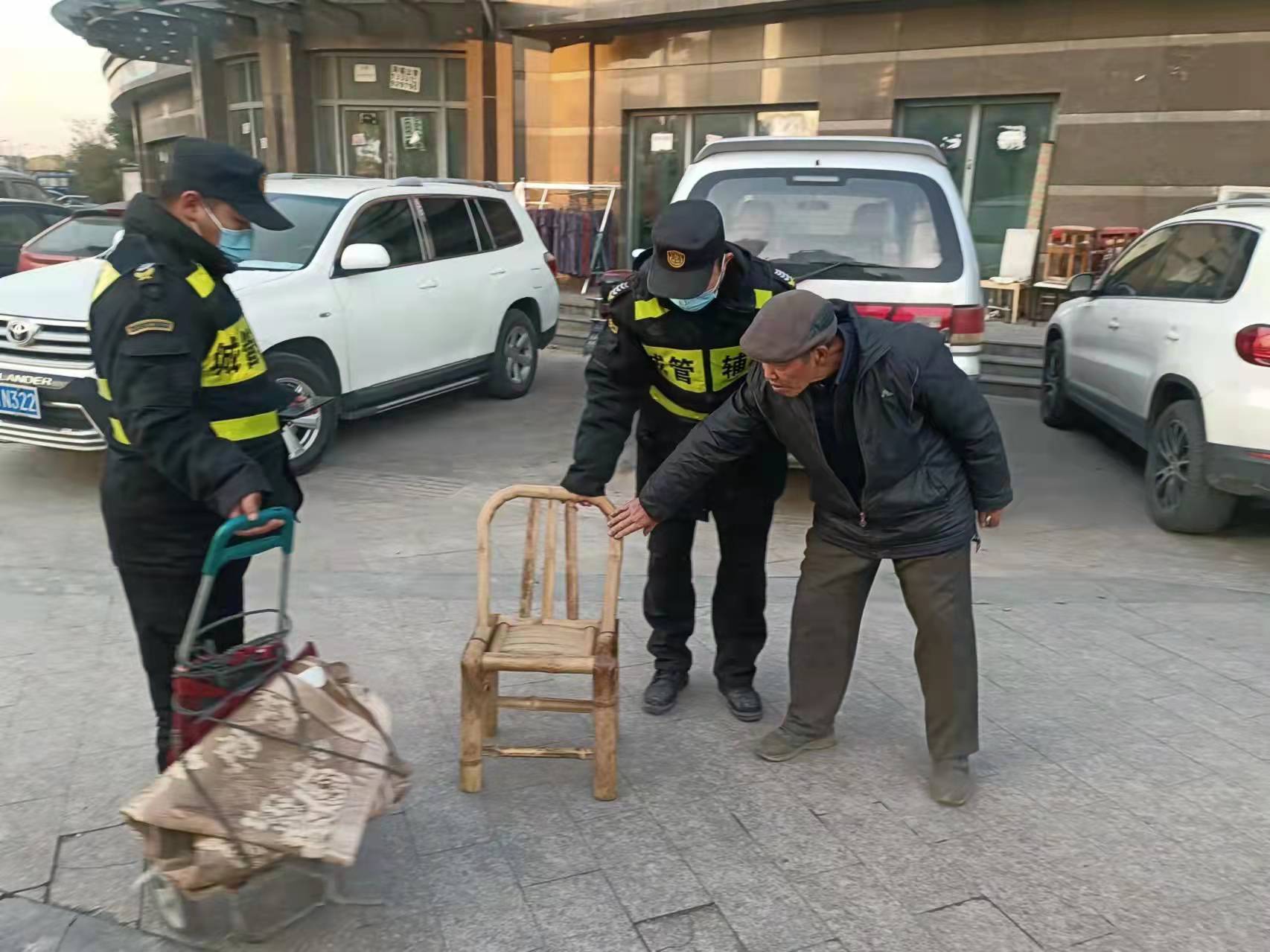 在等待民警時(shí),細心的徐周發(fā)現老人的腿一直在發(fā)抖,就趕忙跑到附近的商鋪借了一把椅子,攙扶老人坐下。