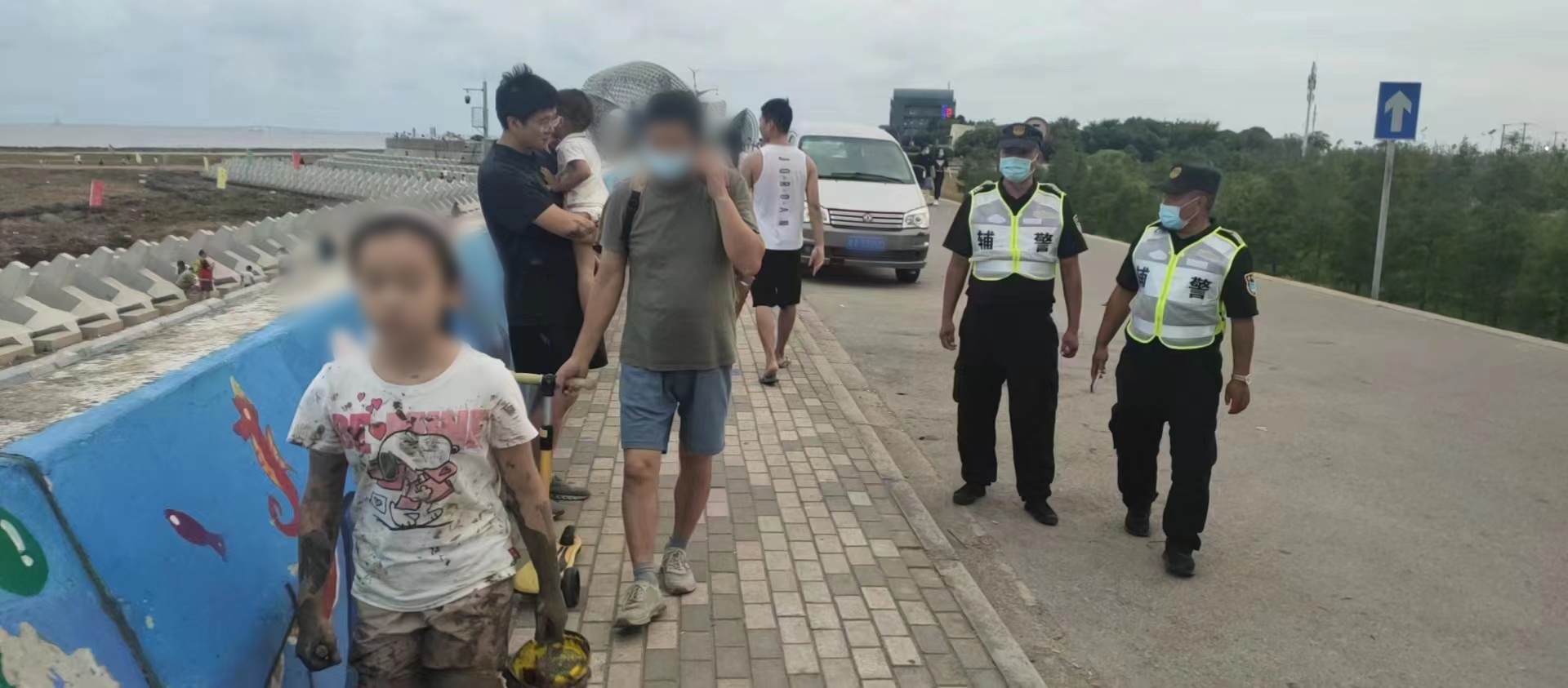 當日17:30,焦國宏在巡邏途中遇到游客求助,稱(chēng)與其8歲女兒走散,他們來(lái)回反復尋找都沒(méi)有找到,希望隊員能夠幫助尋找。因事發(fā)地地處海堤,女童父母擔心發(fā)生意外,顯得十分焦急。