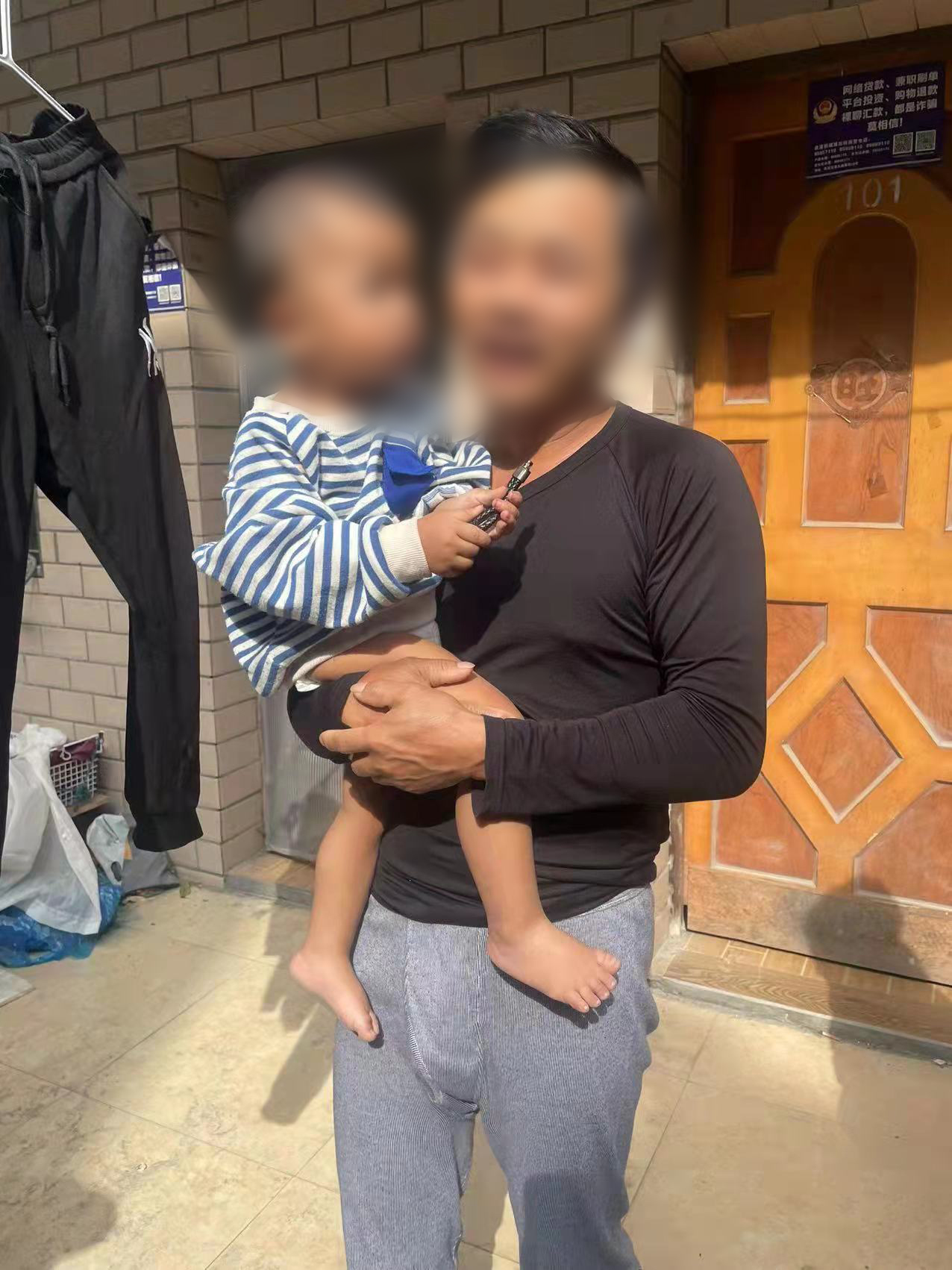 得知小男孩家在附近,兩人便抱著(zhù)小男孩挨家挨戶(hù)詢(xún)問(wèn),打聽(tīng)是否有人認識小男孩。在熱心吳女士和飯店阿姨等人的共同努力下,經(jīng)過(guò)半個(gè)多小時(shí)的尋找,終于找到了正在睡覺(jué)的小男孩爺爺。