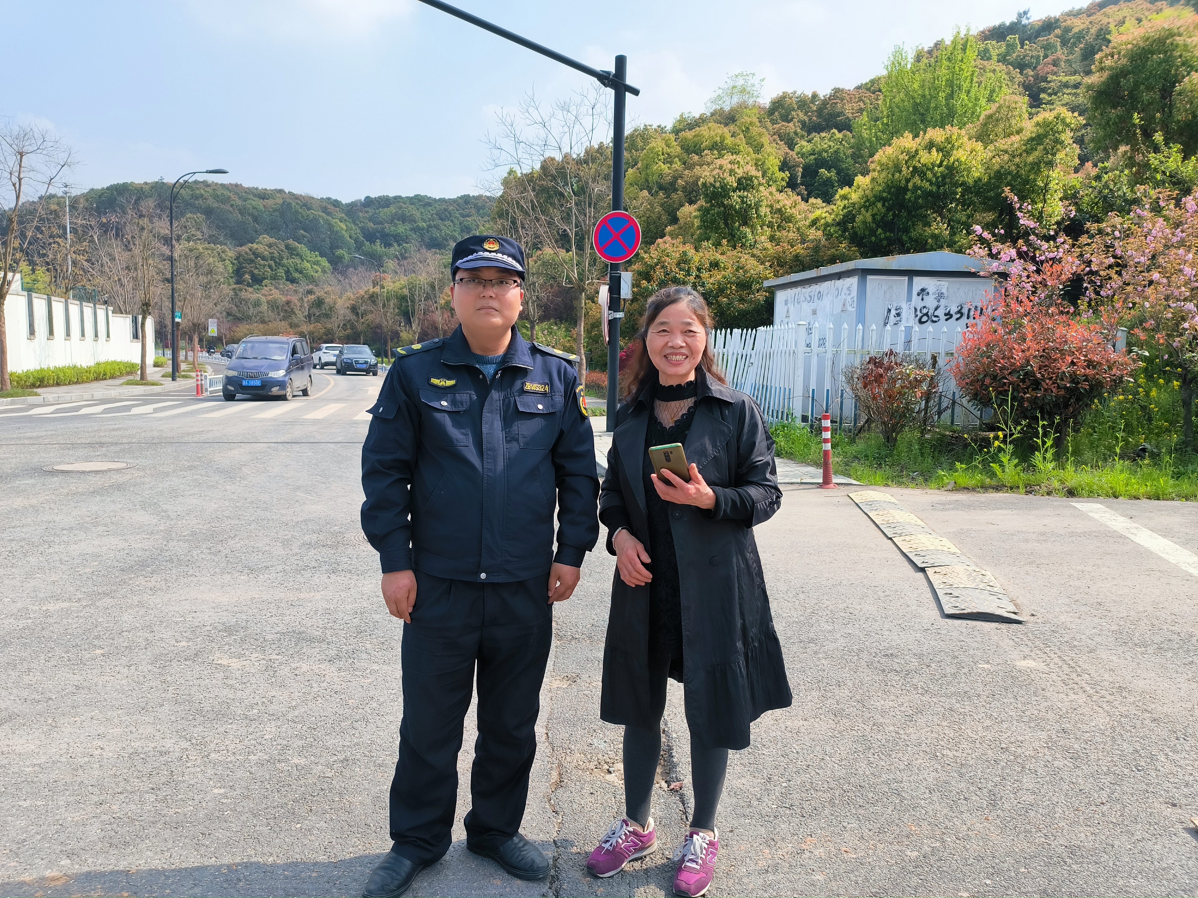 當日14:05,公司員工王亞濤和孟富強在方興渡街曹家山公墓巡查時(shí),撿到一部華為手機,因手機設有鎖屏密碼,無(wú)法聯(lián)系失主。孟富強便將情況報告了項目負責人,并在原地等待失主。