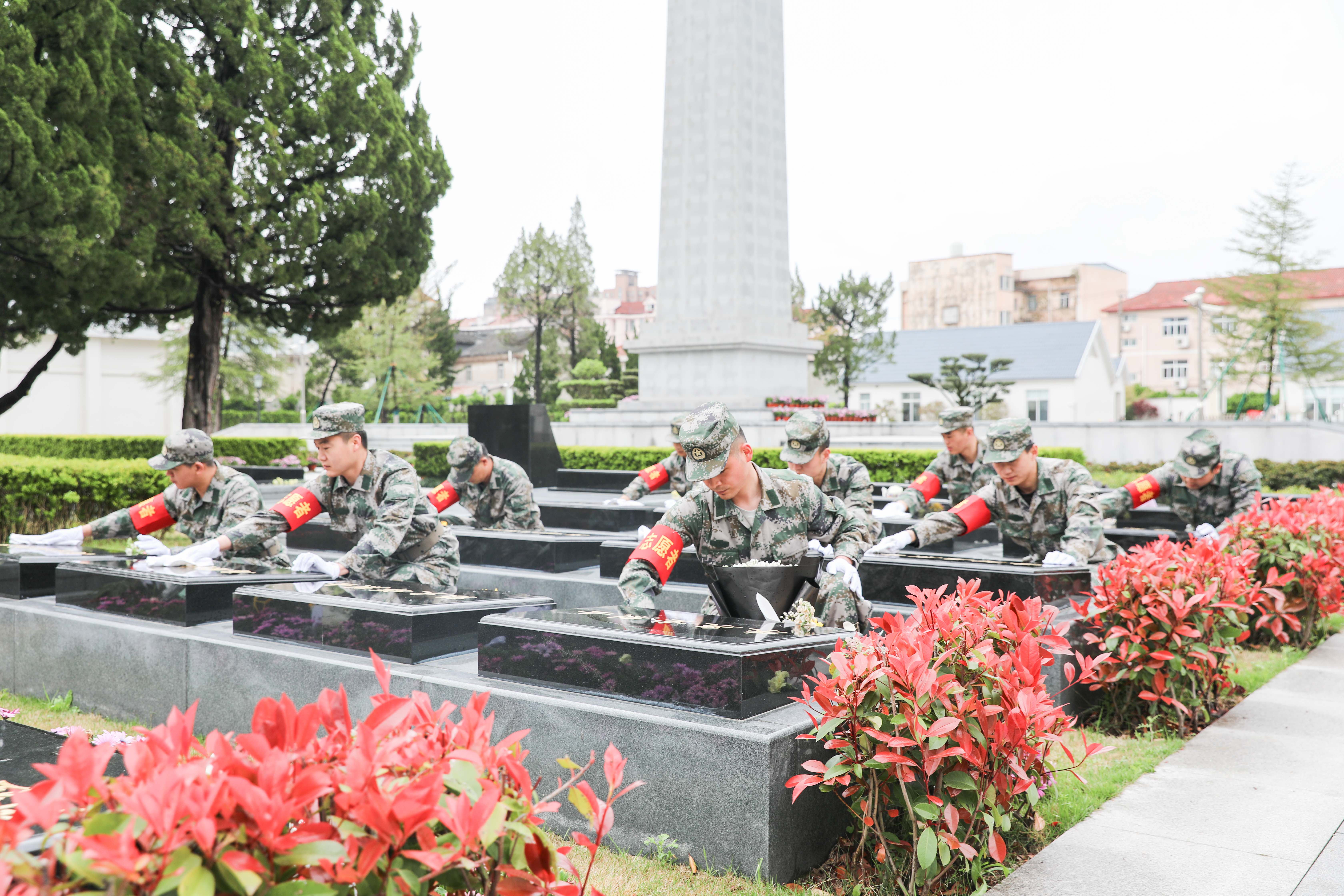 “天地英雄氣,千秋尚凜然”。在革命烈士紀念碑前,全體人員整齊列隊,神情肅然,懷著(zhù)無(wú)比崇敬的心情向長(cháng)眠于此的革命烈士們敬獻花籃、默哀鞠躬。隨后,志愿服務(wù)隊隊員走進(jìn)烈士墓區,精心擦拭烈士名墻、墓碑、基座,擺放鮮花,緬懷先烈,寄托哀思。