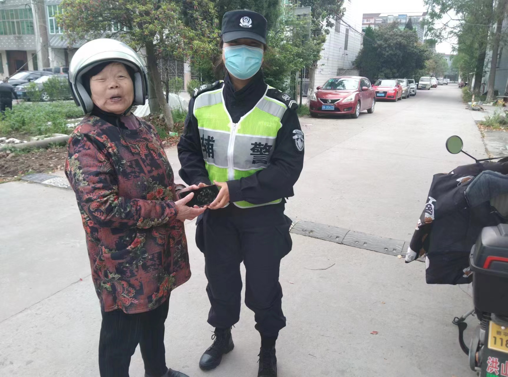 大概過(guò)了半個(gè)小時(shí),一位阿姨急急忙忙返回學(xué)校尋找手機。核實(shí)確認后,郭麗娟把手機交還給了阿姨。阿姨非常高興,連連向員工郭麗娟道謝。