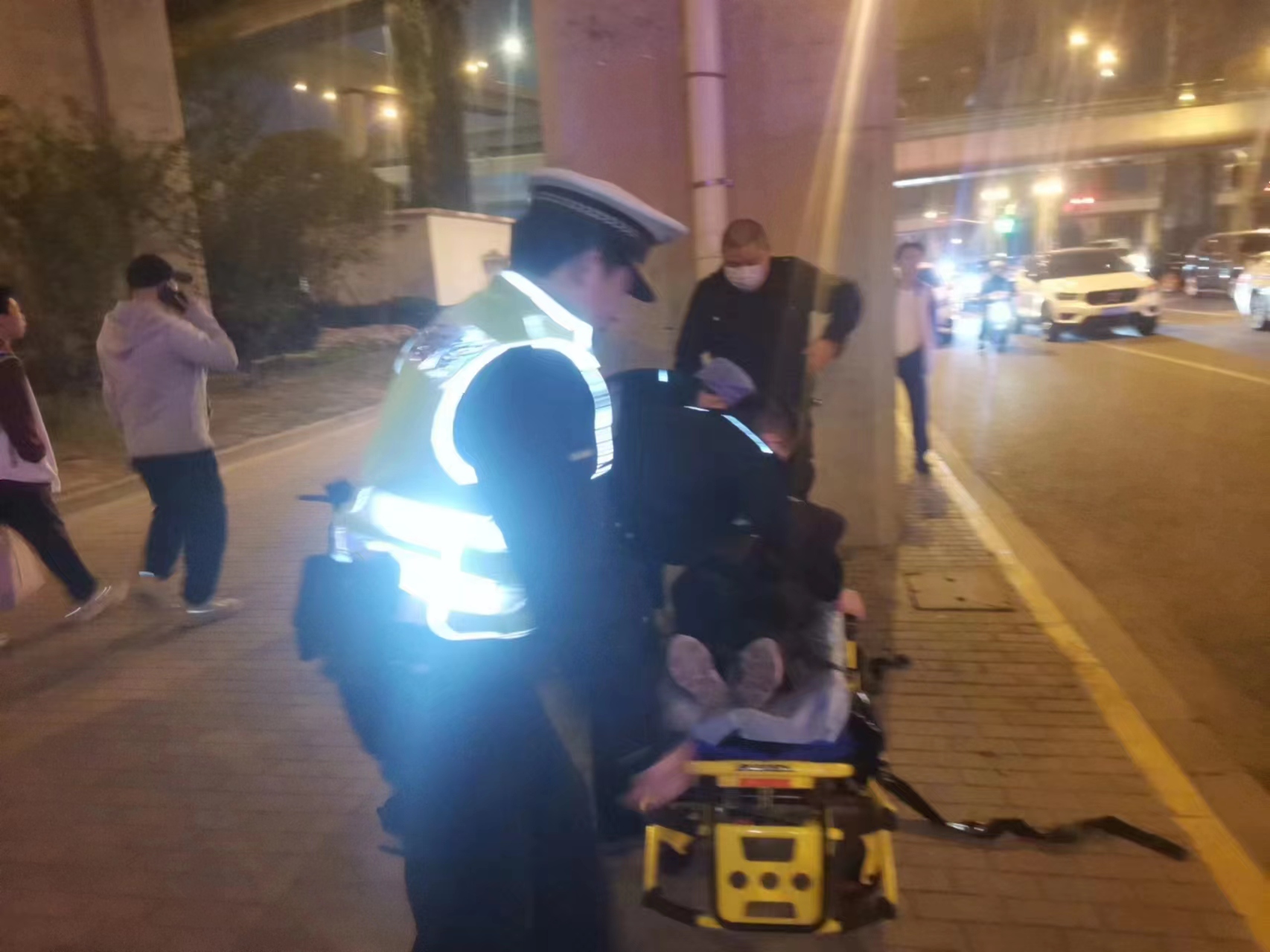 很快,120急救車(chē)來(lái)到事發(fā)現場(chǎng),高昌炎幫助醫護人員將老人抬上救護車(chē)送往醫院救治。