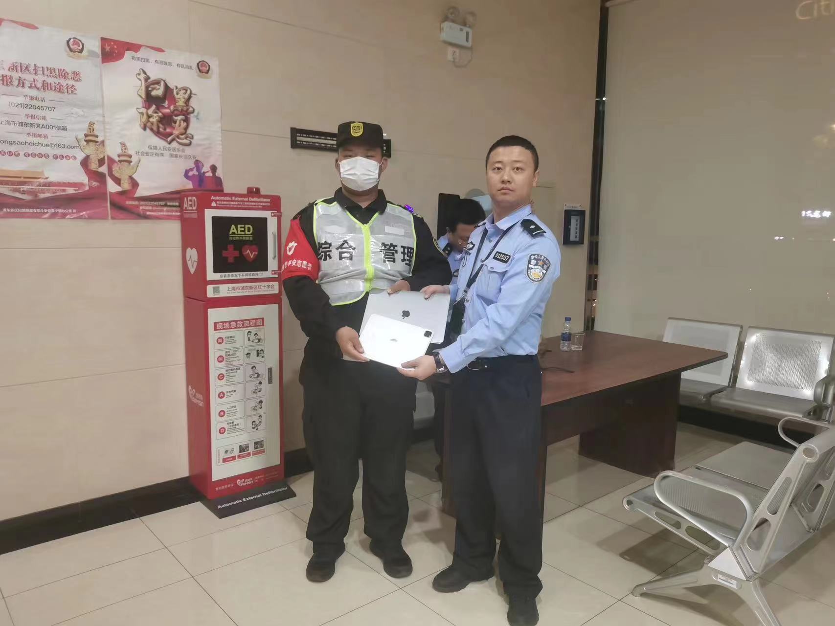 5月18日,宗保公司駐浦東新區陸家嘴綜合管理項目員工撿到平板電腦上交民警。