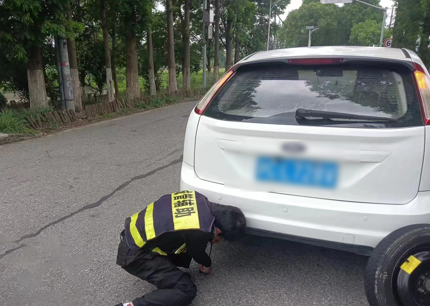 當日9:10,公司員工花秋峰在建設路周鄧公路路口巡邏時(shí),遇到一女士求助,稱(chēng)自己的車(chē)后輪沒(méi)氣了,撥打了救援中心電話(huà),但救援中心說(shuō)救援車(chē)一時(shí)來(lái)不了,而公司里有非常重要的事情,需要她馬上趕去處理,看能不能幫忙換一下備用輪胎。