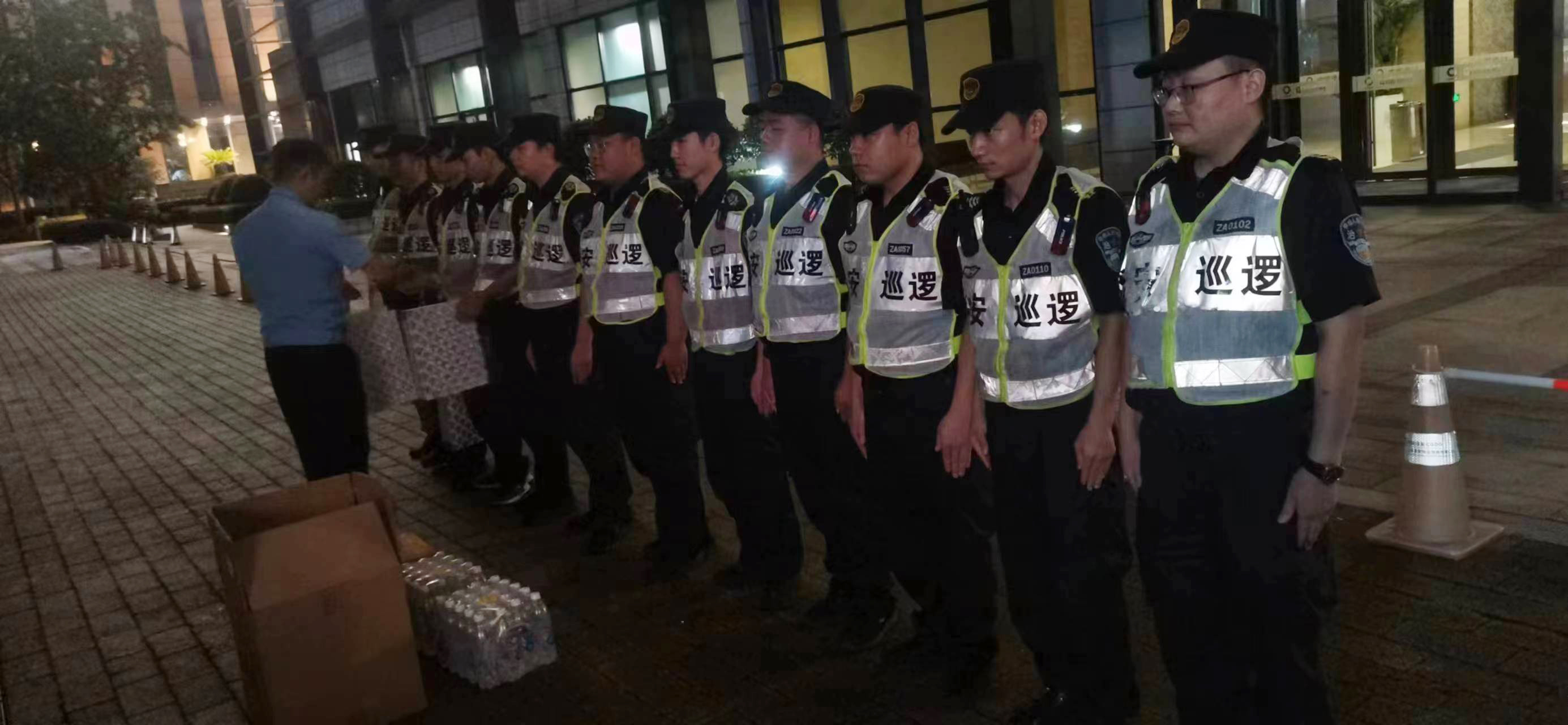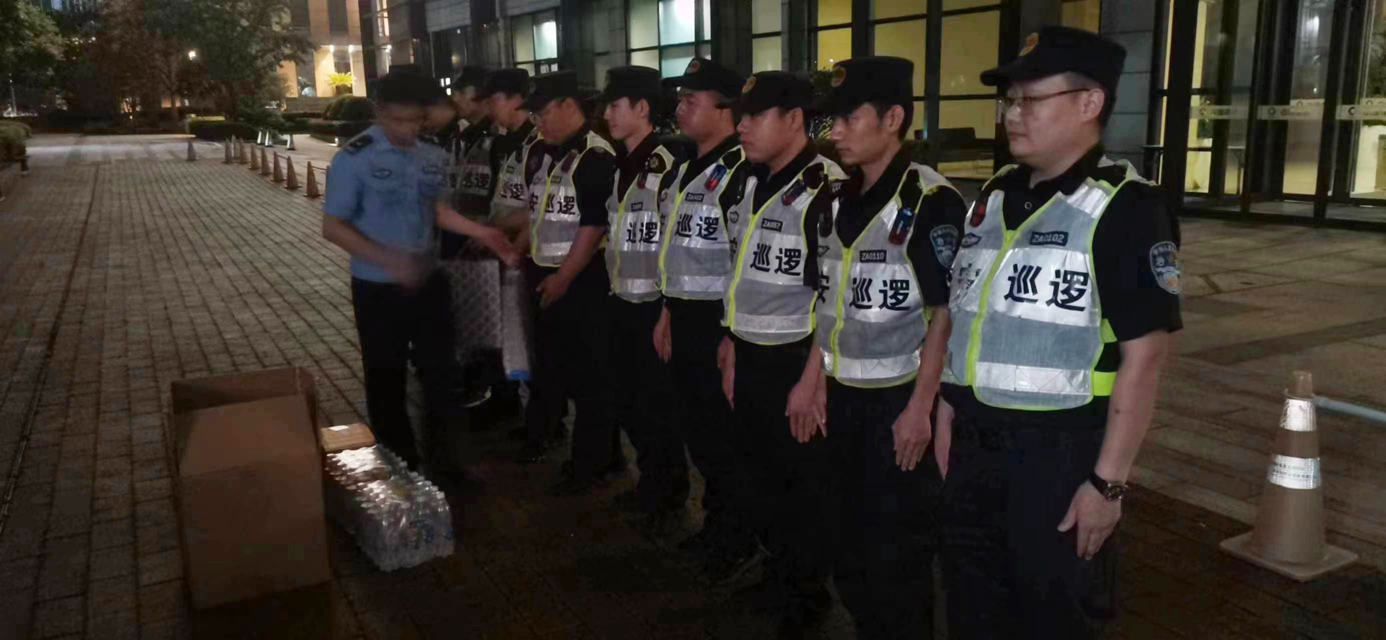 8月1日,浦東新區公安分局世博園區公安處一大隊大隊長(cháng)沈波一行看望慰問(wèn)高溫下奮戰在一線(xiàn)的宗保公司駐世博園區項目員工。