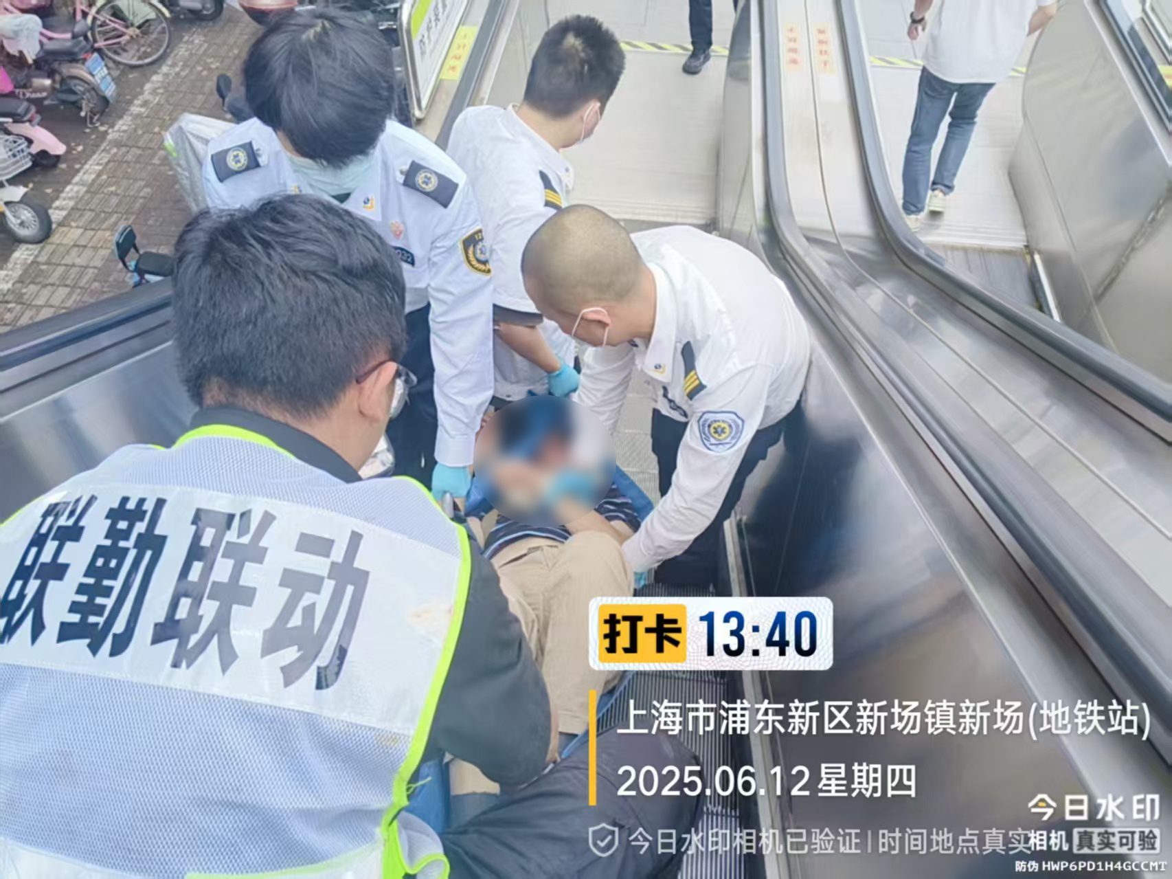 當日13:25,正在16號線(xiàn)新場(chǎng)地鐵站2號口附近巡邏的公司員工翟佳明,突然聽(tīng)到一陣急促的喊叫聲,來(lái)不及多想的他便立即循聲跑去。