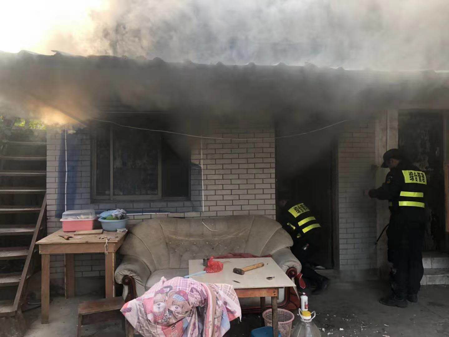 當天下午14:31分,當陳超正在進(jìn)行日常巡邏時(shí)。當巡邏至石鴿里163號附近時(shí),隱約看見(jiàn)有亮光,憑著(zhù)職業(yè)的敏感性,立即向發(fā)光處靠近。原來(lái)是163號居民房間里著(zhù)火了,火勢蔓延迅速,如果不及時(shí)撲滅,后果不堪設想。陳超立即將該情況報告隊長(cháng),并請求支援。不到5分鐘,隊長(cháng)及隊友拿著(zhù)滅火器材來(lái)了,并通知綜治科領(lǐng)導李賢海、李國華到現場(chǎng)。陳超告知居民家中無(wú)人應答,情況緊急,隊長(cháng)下令把門(mén)鎖撬開(kāi),先救火。隊員有的拿滅火器;有的從旁邊打水投入到滅火行動(dòng)中。經(jīng)過(guò)隊員和城管隊員大家共同的努力,火勢終于有所控制,并被撲滅。