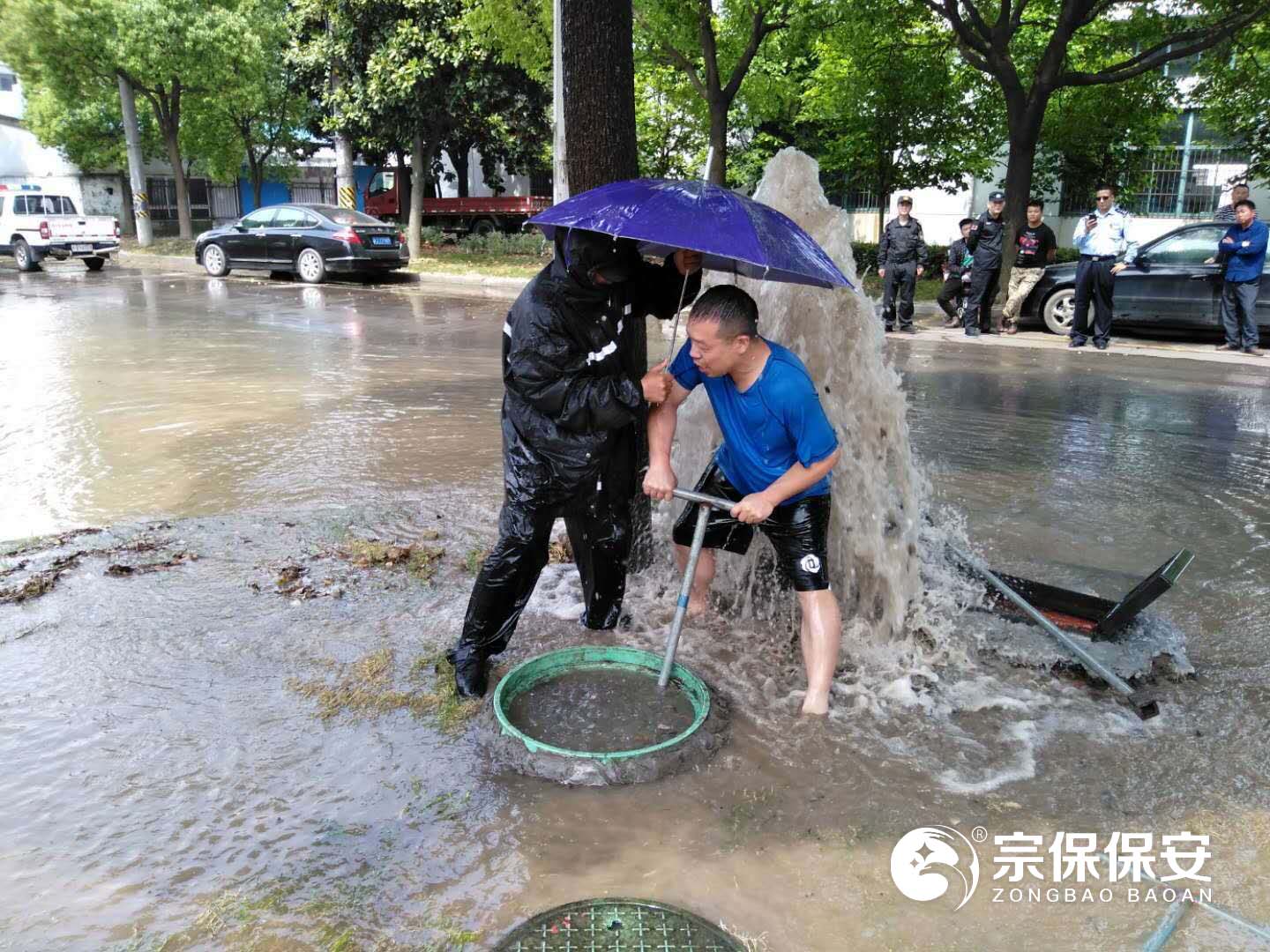 2019年5月12日,宗保奉浦網(wǎng)格項目隊員日常巡查時(shí),發(fā)現路邊消防栓漏水嚴重,變成了“噴泉”,一場(chǎng)“人水大戰”隨即展開(kāi)。