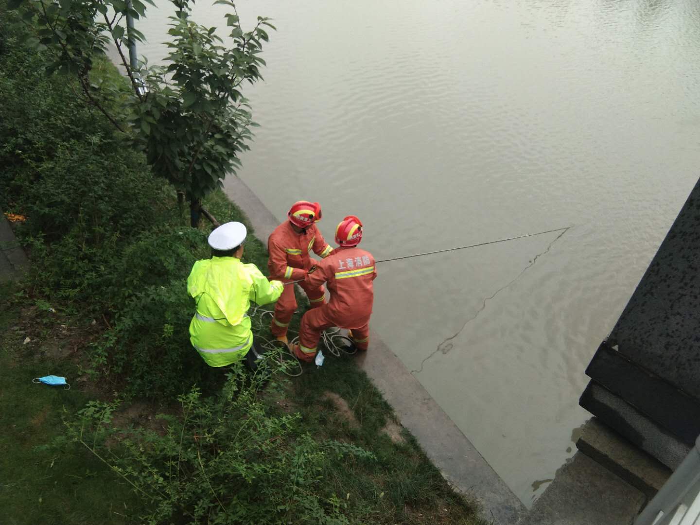 6月21日18:47 ,宗保公司駐閔行新虹街道交通輔警項目隊員蔣虎、紀宗印、石瑩、王凱等隊員,在七莘路高虹路北橫涇橋配合民警整治違法車(chē)輛時(shí),突然發(fā)現一名男子溺水。