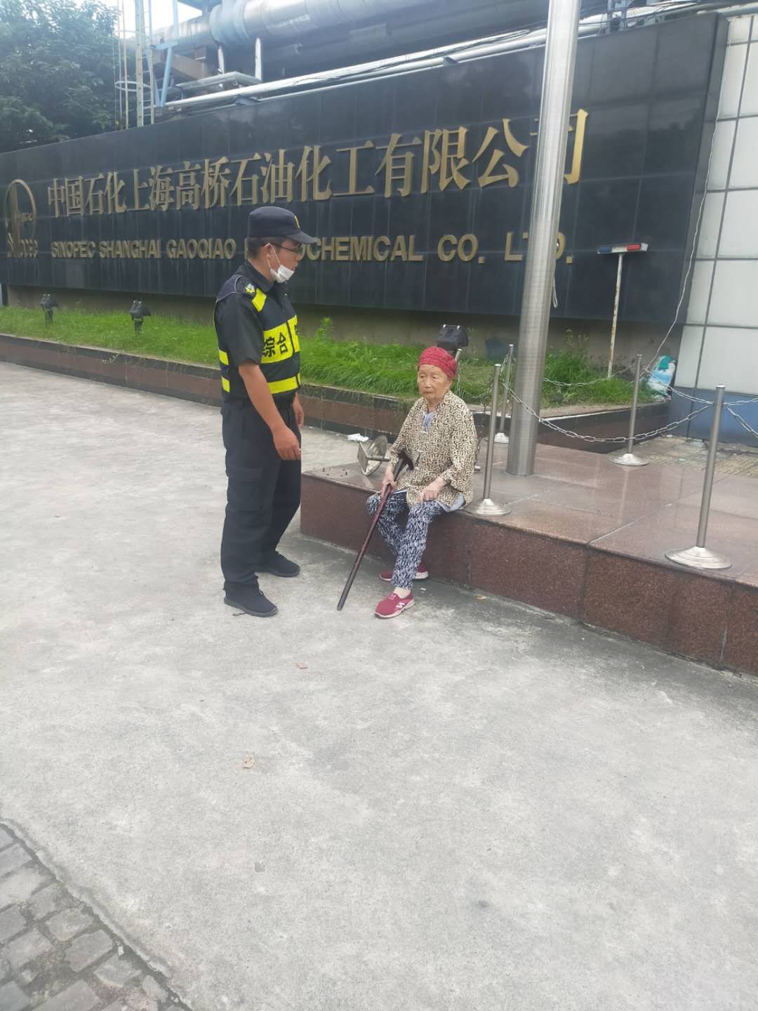 7月7日18:00,宗保公司駐高橋市容項目隊員王金齊、李少秋巡邏至浦東北路花山路時(shí),看到一位老阿姨在機動(dòng)車(chē)道上徘徊,眼神還有些許驚慌。