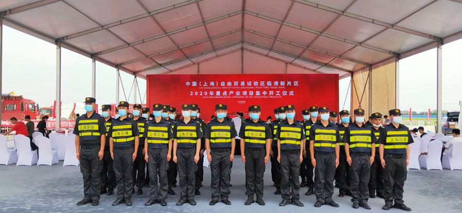 7月7日上午,由上海市經(jīng)濟和信息化委員會(huì )、中國(上海)自由貿易試驗區臨港新片區管理委員會(huì )主辦,上海臨港經(jīng)濟發(fā)展(集團)有限公司承辦的2020年總投資約480億元的18個(gè)重點(diǎn)產(chǎn)業(yè)項目集中開(kāi)工儀式在臨港新片區隆重舉行,臨港新片區智能新能源汽車(chē)產(chǎn)業(yè)鏈招商服務(wù)中心同時(shí)揭牌。市委書(shū)記李強出席并宣布項目開(kāi)工,市委副書(shū)記、代市長(cháng)龔正講話(huà)。上海宗保保安服務(wù)有限公司全程負責此次開(kāi)工儀式的現場(chǎng)安保任務(wù)。