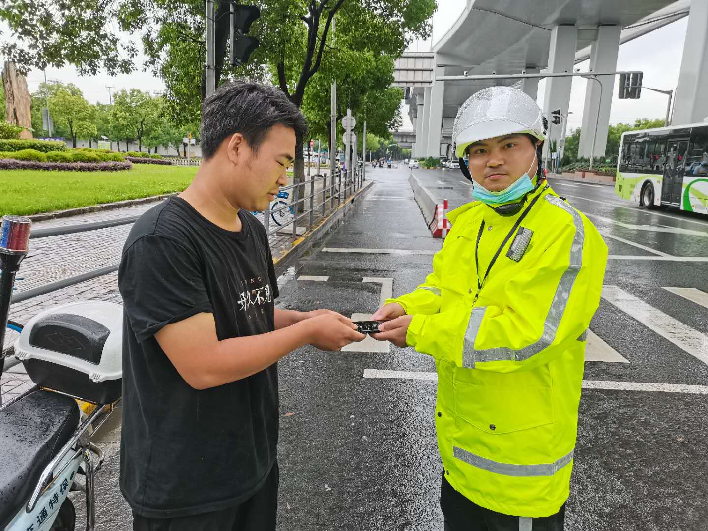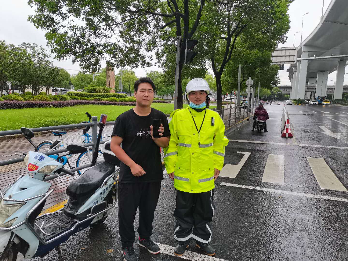 7月15日13:20,宗保公司駐閔行新虹街道項目隊員蔣虎,在天山西路申虹路巡邏時(shí)撿到一部手機。
