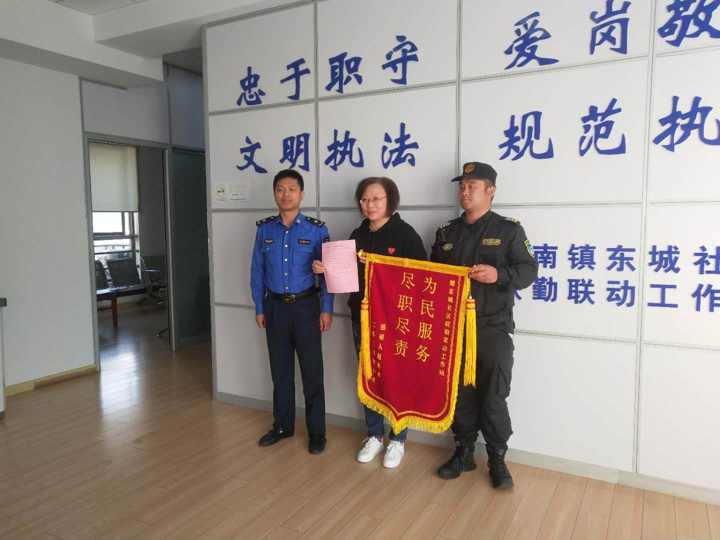10月20日,一面繡有“為民服務(wù) 盡職盡責”的錦旗送到了宗保公司駐惠南鎮城管中隊項目隊員手中。