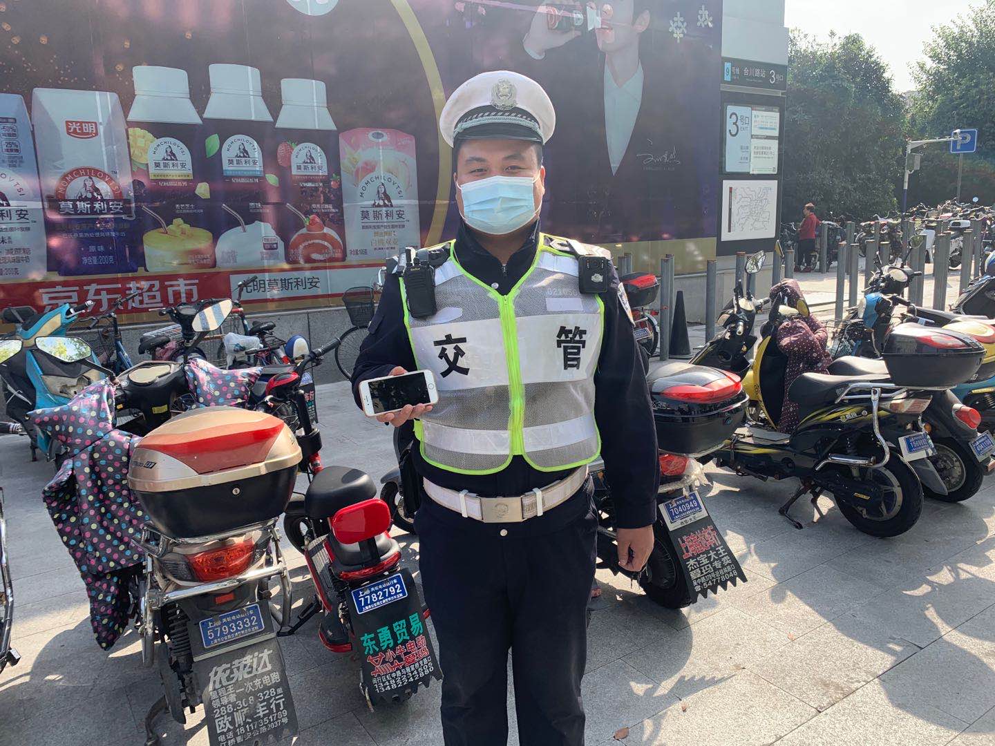供稿人:許志剛拾金不昧好隊員 弘揚傳遞正能量——閔行虹橋交管輔警隊員撿到手機