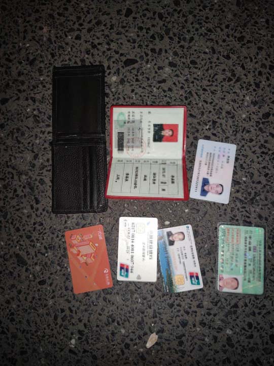 當天18:30左右,楊有福巡邏至何母橋村委時(shí),在非機動(dòng)車(chē)道地上撿到一個(gè)錢(qián)包。為尋找失主信息,楊有福打開(kāi)錢(qián)包清點(diǎn),內有身份證、駕駛證、市民卡、銀行卡和軍官證等物品??紤]到失主丟失證件一定很著(zhù)急,便在原地等待。